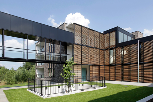 Hier koos I’M Architecten uit Deventer voor de prachtige houten Loggia panelen.