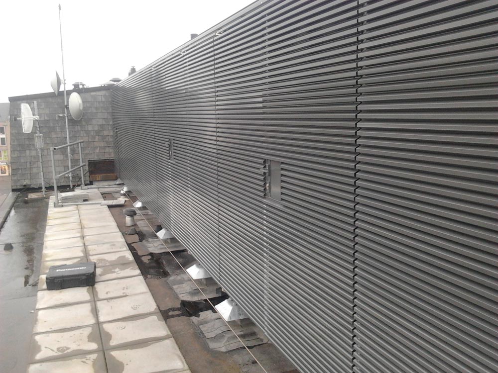 Onderdeel in de eindfase was om de luchtbehandelingkasten aan het zicht te onttrekken. Luc Jansen van Jansen Terborg was als uitvoerder erg betrokken bij dit project. “De buurtbewoners en het bouwtoezicht ergerde zich al snel aan het uitzicht op de luchtbehandelingskasten”.