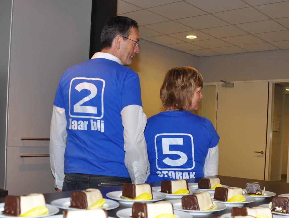 s’ middags was een gezellig samenzijn met een hapje en drankje. Beide jubilarissen zijn nog begonnen in het eerste pand van Storax aan de Amerweg 3.