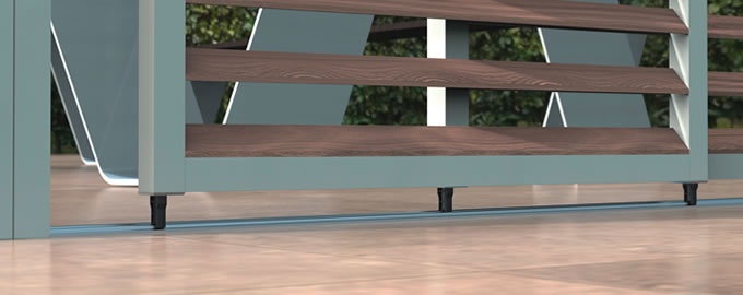 Storax® Loggialu® vaste of verschuifbare zonweringspanelen bestaan uit op maat geproduceerde kadersystemen in een 3-tal breedtes 40, 65 en 130 mm. Door deze variërende kaderbreedtes is het mogelijk om verschillende lameltypes in verschillende h.o.h. afstanden te verwerken. De Loggialu panelen kunnen enkelvoudig-, symmetrisch- en telescopisch schuivend worden uitgevoerd