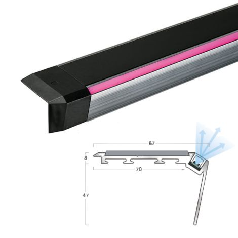 Voor de trapneusprofielen is er keuze uit drie hoofdverlichtingssystemen, elk met diverse LED-kleuren: