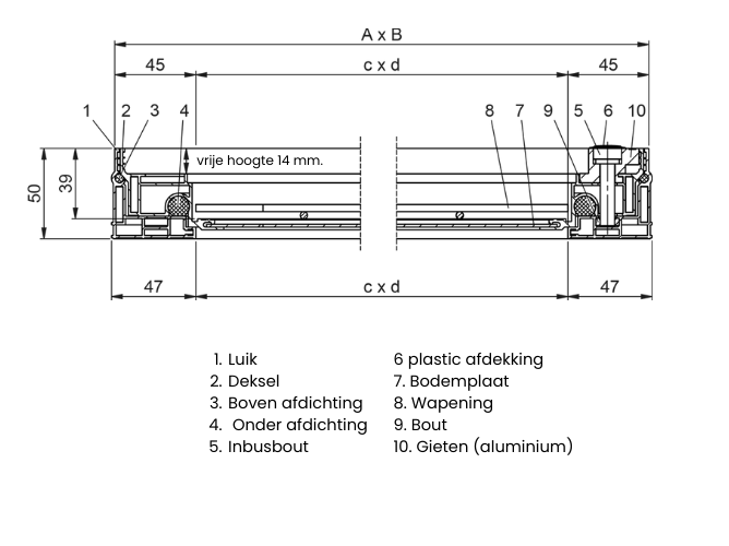 | Type | Binnenmaat putomranding | Uitwendige afmeting | Gewicht ongevuld |